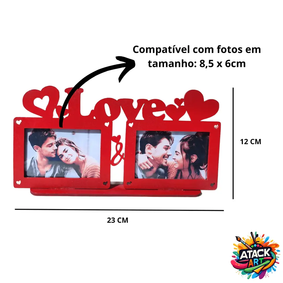 Porta-Retratos Duplo "Love" Com Suas Fotos Preferidas – 2 Fotos 8,5x6cm